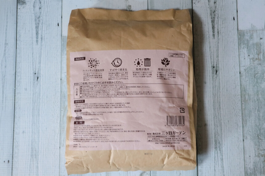 サクラの香りの猫砂のパッケージ裏